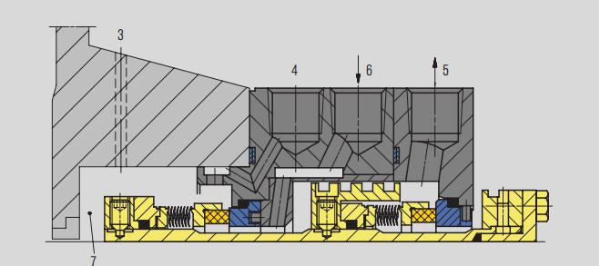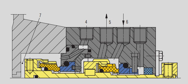 1.Từ khu vực áp suất cao của máy bơm (đường ống xả máy bơm hoặc đường ống xả máy bơm) 3. Cổng xả (F) 4.Làm mát (Q) 5. Cổng thoát nước (D) 6. Buồng kín