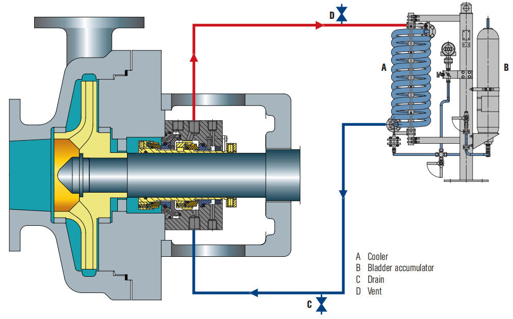 Sơ đồ 1 không yêu cầu bất kỳ đường ống bên ngoài nào. Nó đóng vai trò là đường ống xả bên trong cho các vòng bít cơ khí. Không giống như Sơ đồ 11, đường ống xả không tiếp xúc với khí quyển, do đó ngăn chất lỏng có độ nhớt cao khỏi bị đóng băng/polyme hóa ở nhiệt độ thấp.